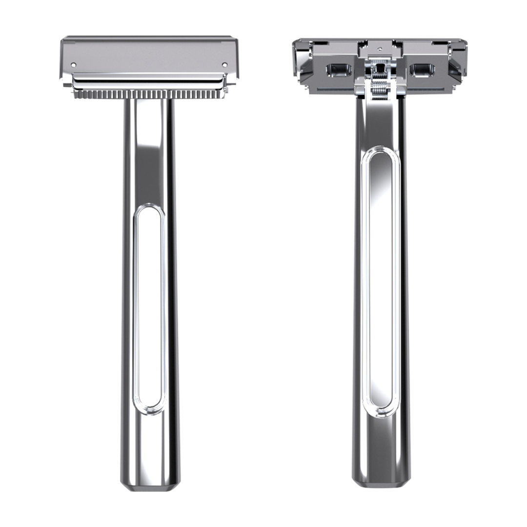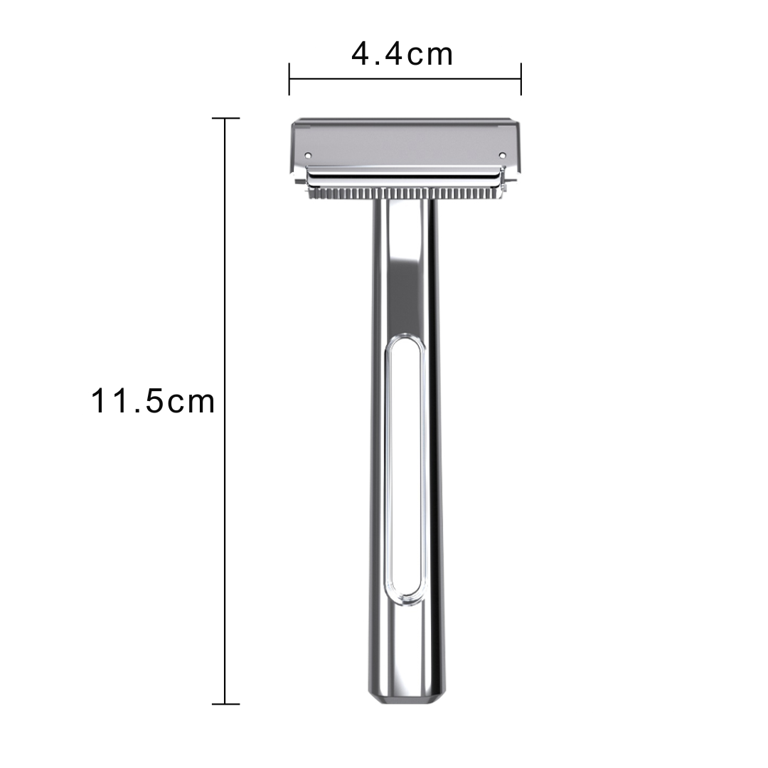 Esta cuchilla clásica de doble cuchilla dura toda la vida, está hecha de latón cromado de alta calidad y sus cambios son baratos, reciclables y tienen menos impacto ecológico.